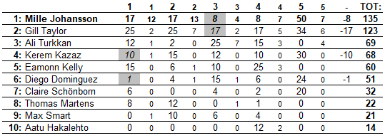 Men turkiske Ali körde av på näst sista sträckan i 40 sekunders ledning, mellan Mille och nye ledaren Taylor Gill stod sju sekunder när sista sträckan startade - detta då Mille också plockat 14 sekunder prickar för en felaktigt genomförd virtuell chikan. Vinnaren tar titeln - Mille tar målgång på sista sträckan 8,6 sekunder före Taylor - samtidigt 1,6 sekund före totalt!
